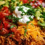 So, what’s the deal with the name “Easy Taco Rice Bowl”? Ever wonder why it combines all the delicious bits of a taco into a cozy bowl of rice? It’s like the culinary equivalent of a hug – warm, inviting, and oh-so-satisfying! It brings together the flavors of seasoned meat, perfectly cooked rice, and all the fixings you’d find in a taco but simplifies it for those nights when you just want something easy and hearty. As they say, “the way to a man’s heart is through his stomach,” and trust me, this dish will tick all the boxes! Don’t be shy; give it a try and impress your loved ones!