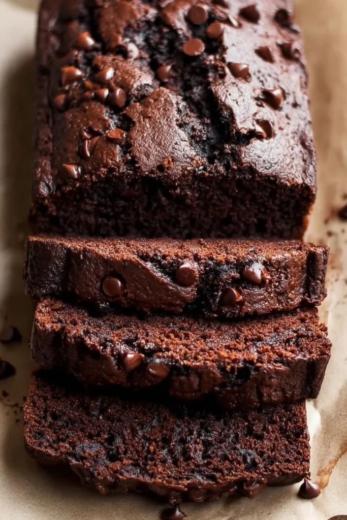 Extra moist chocolate zucchini bread loaf slice