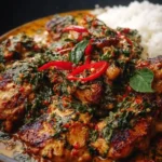 First, the main highlight of this dish is undeniably its flavor! The chicken marinates in a creamy coconut mixture that not only infuses each bite with moisture but also provides a unique taste that’s both sweet and savory.
