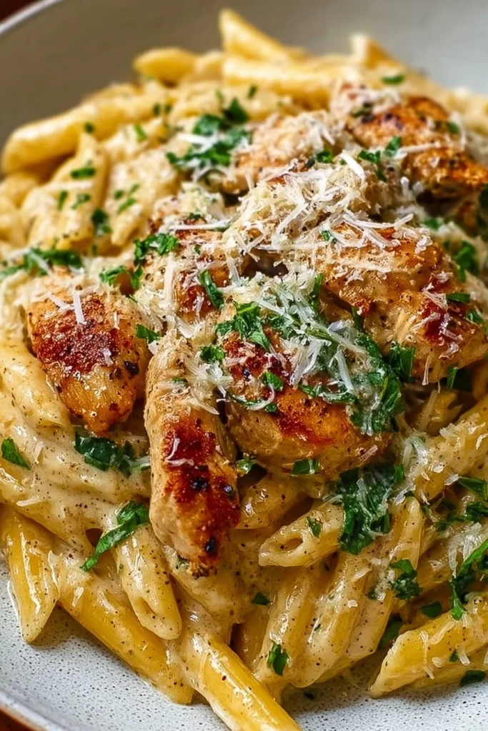 - Combine and Serve: Slice the chicken and toss it with the pasta and sauce. If using, stir in 1 cup of fresh spinach until wilted. Garnish with chopped parsley and additional cheese if desired.