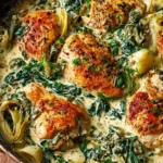 Looking for a dish that’s rich, flavorful, and effortlessly elegant? Juicy One Pan Creamy Spinach Artichoke Chicken is the answer! This recipe delivers everything you crave — tender chicken, a luxuriously creamy sauce, and the classic pairing of spinach and artichokes — all cooked together in one skillet for minimal cleanup.