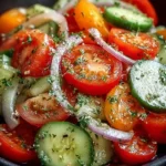 So, what’s the deal with the name “Refreshing Cucumber Tomato Salad”? It’s not just a catchy title borrowed from a trendy menu! This salad embodies the essence of summer with every bite. Imagine biting into a crisp cucumber—so refreshing it feels like a splash of cool water on a hot day. Paired with vibrant, juicy tomatoes, this salad brightens any meal. It’s no wonder that people frequently say, “The way to a man’s heart is through his stomach,” especially when this delightful dish is on the table! So why not whip up this easy recipe and see for yourself? Your taste buds (and any guests you have) will thank you!