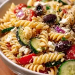 Did you know that pasta salads have been around since ancient times? In fact, it’s said that the first pasta salad date back to the Romans! With its versatility and ease of preparation, it’s no wonder that pasta salad remains a family favorite. If you love classic dishes like our Creamy Chicken Pasta Bake, this Greek Pasta Salad offers a refreshing twist that’s equally satisfying. Grab your ingredients and get ready to impress your family with this easy, scrumptious meal that you can whip up in no time!